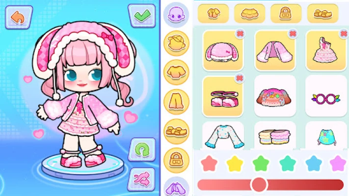 The game world offers a huge selection of items and clothing styles, allowing you to unleash your creativity. You can design any characters from the ground up, customizing their skin tone, body shape, hairstyle, facial features, and much more. Start your dress-up game now! Select from hundreds of stylish outfits to dress up your characters. Bring them to life with various expressions, actions, and walking poses!