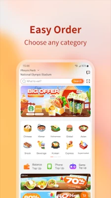 With free switch between Chinese, English, Khmer, Vietnamese, Lao, Thai, Korean, Japanese, Indonesian, etc., E-GetS APP can translate the names of all cuisines (Chinese, Western, Khmer, Thai, Vietnamese, Korean...) into your mother tongue, giving you barrier-free experience in food delivery.