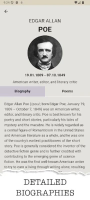 Whether it's classics like Poe and Shakespeare or hidden gems, this app makes it easy to explore the diversity of English poetry.