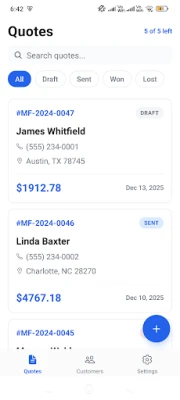 No account required. Open the app and start quoting immediately. Free 5 quotes per month. Upgrade to Pro when you need unlimited quotes, your logo on PDFs, and customer tracking.