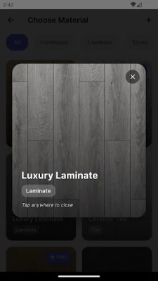 Try a wide range of pre-loaded flooring styles — from hardwood and laminate to marble, ceramic, and vinyl.