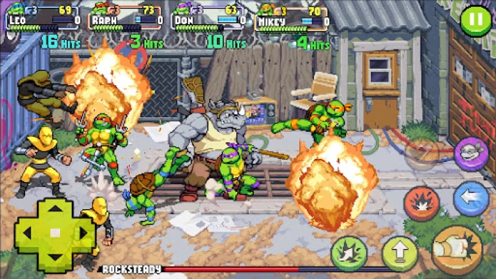 Smash your way through more than a dozen different levels and use your dangerous ninja combos to defeat classic enemies like Baxter Stockman or the Triceraton!